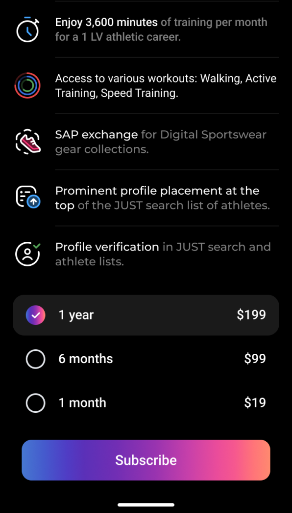 Select the plan that best suits your needs and unlock all of JUST's features, including the activity-based mining algorithm.