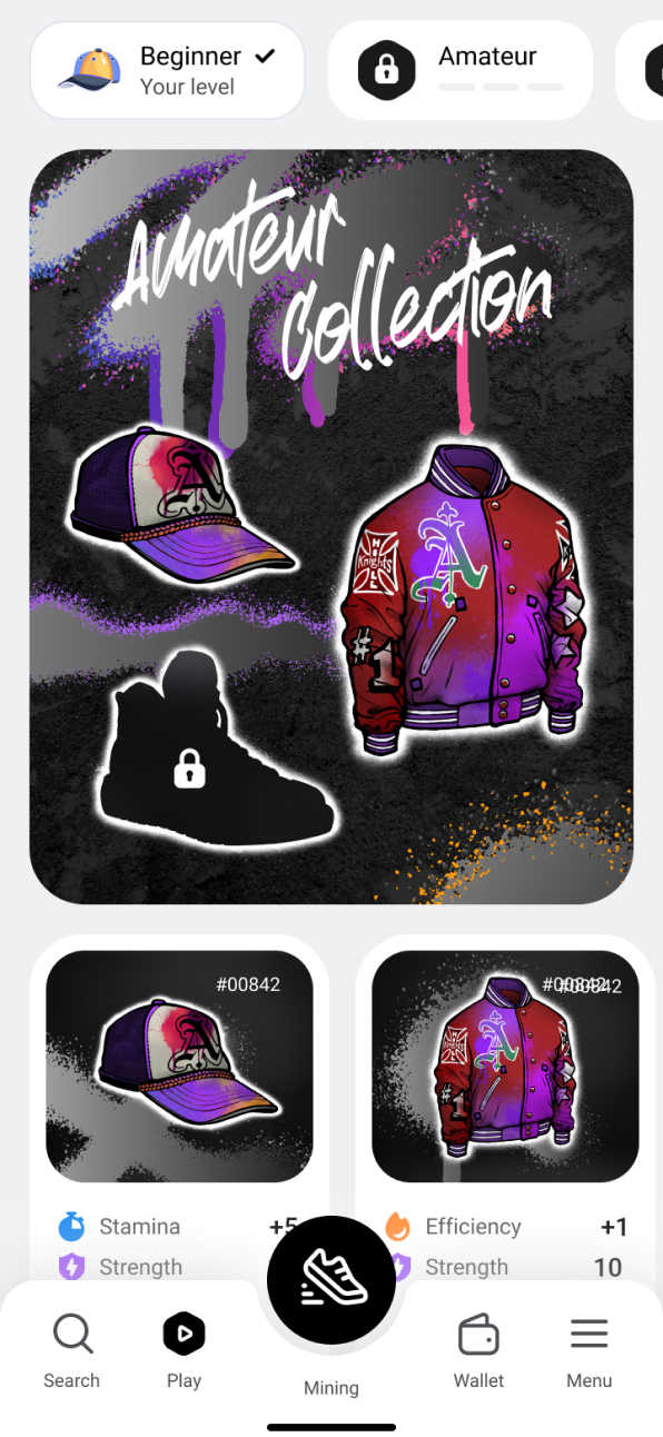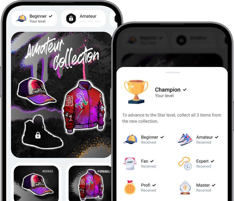 Initiate your career in JUST Play by completing a full collection of one level of digital gear: a baseball cap, a bomber jacket, and sneakers. Collect collections, unlock new levels, and ascend the career ladder with JUST.