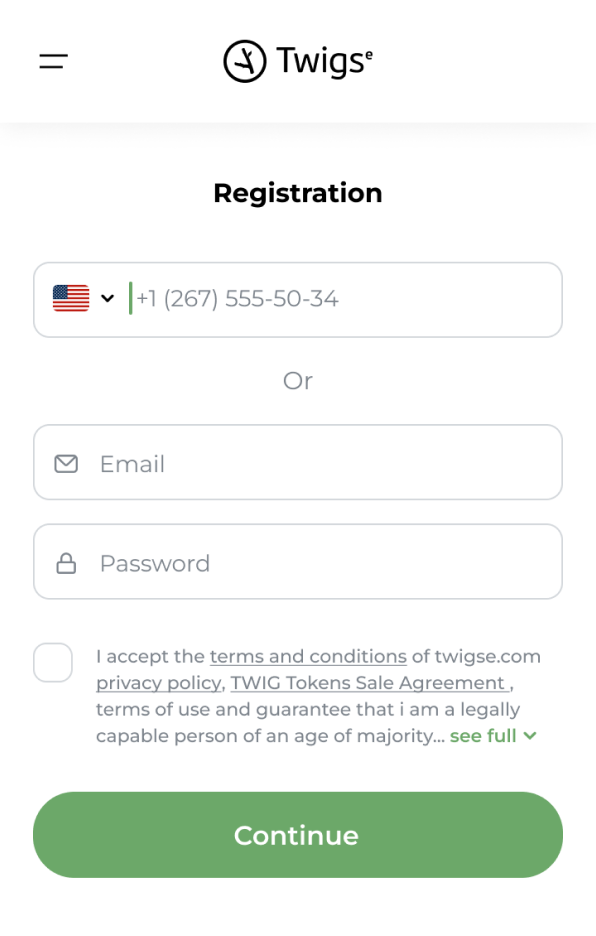 Fill in all the required fields to complete the Twigse account registration.