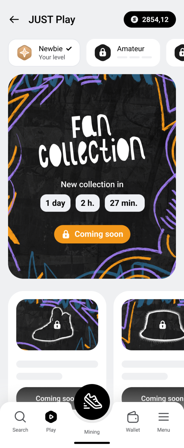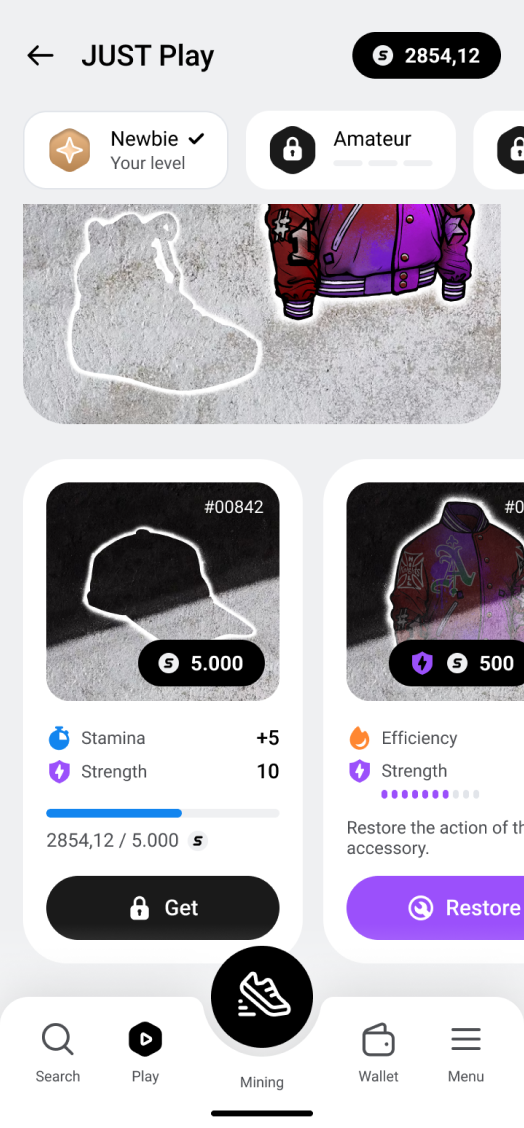 Every month, you'll find exclusive collections in the JUST Play section. These collections feature Digital Sportswear Accessories designed to boost the efficiency of your workouts and maximize your SAP earnings.*